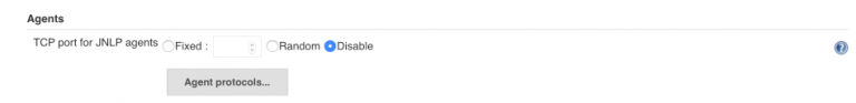 1. To configure a fixed JNLP port for the Jenkins agents, go to Manage Jenkins > Global Security > Agents and set a static TCP port for JNLP agents.